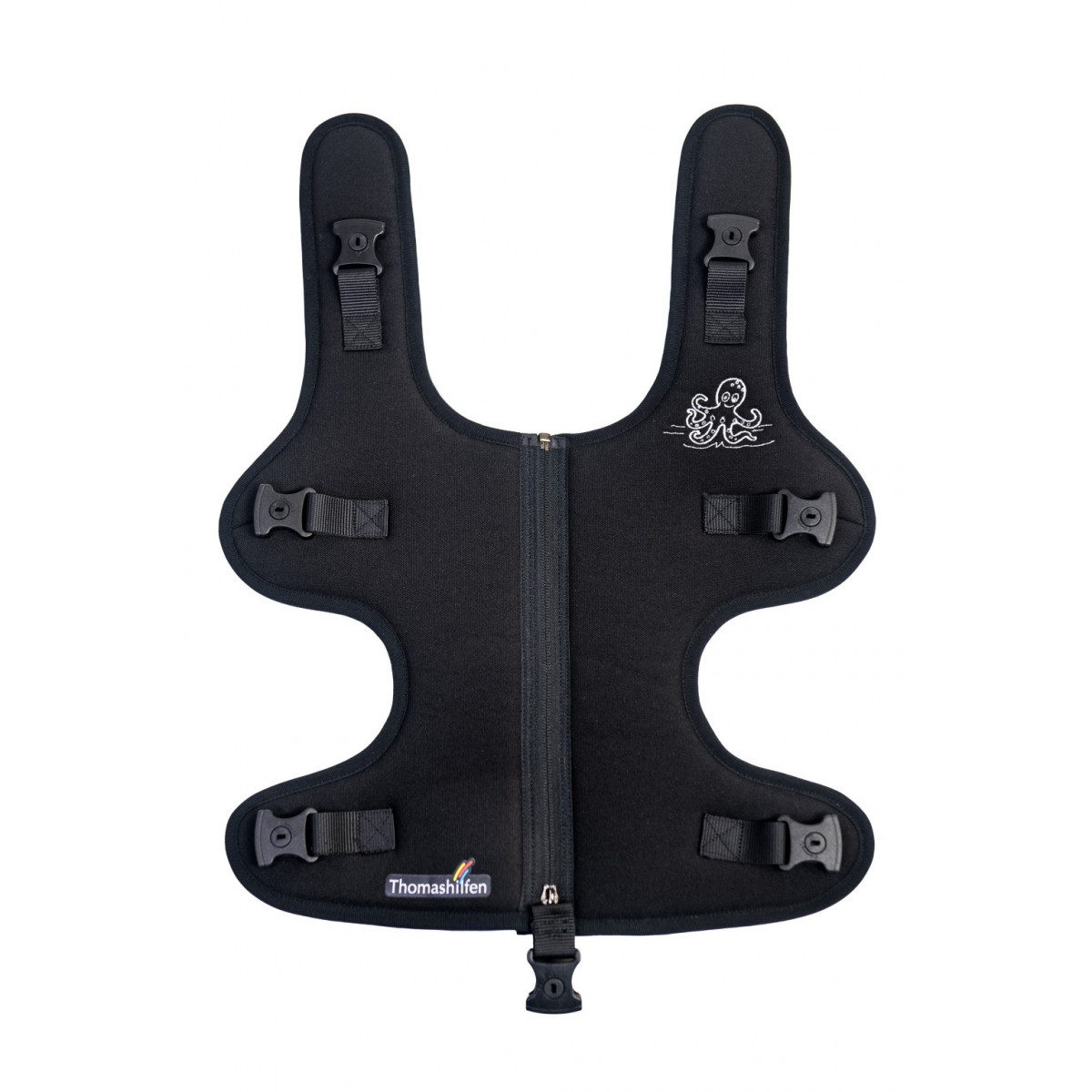 Позиционный жилет Thomashilfen Octopus (Томасхилфен Октопус) предлагает систему, которая поддерживает правильное положение пользователя в автомобиле. Это особенно важно, если трехточечный ремень безопасности автомобиля не обеспечивает достаточную поддержку. Жилет равномерно распределяет нагрузку по телу, что значительно снижает риск травм при резком торможении.