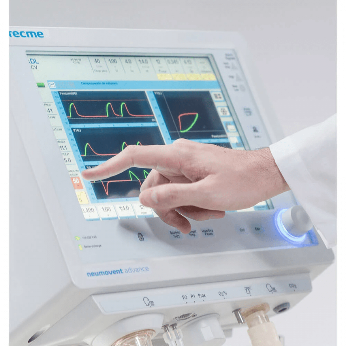 Tecme Neumovent GraphNet (Течми Ньюмовент ГрафНет) — универсальный аппарат ИВЛ, предназначенный для инвазивной и неинвазивной вентиляции пациентов всех возрастов, включая новорождённых. Благодаря неонатальной опции прибор обеспечивает точную вентиляцию с дыхательным объёмом от 5 мл, что делает его надёжным решением для реанимаций и отделений интенсивной терапии.