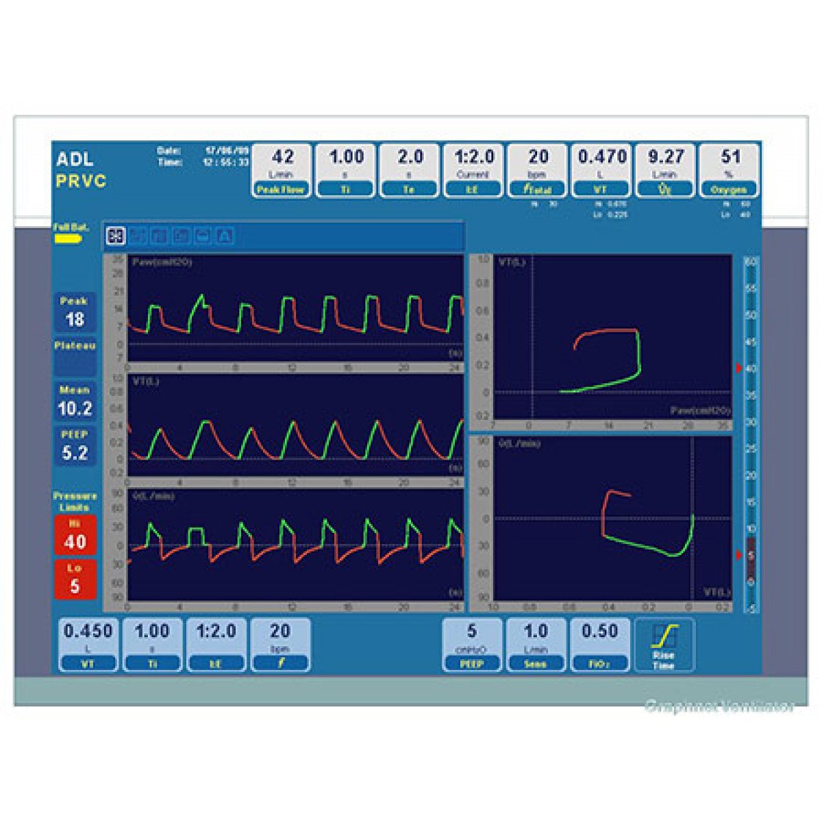- Отображение графиков и дыхательных петель в реальном времени