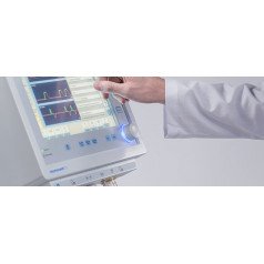 Для удобства и контроля прибор оснащён большим цветным сенсорным дисплеем с наглядным отображением всех ключевых параметров, графиков и дыхательных петель. Управление дополнено кнопочной панелью и джойстиком, а система настраиваемых тревожных сигналов повышает безопасность терапии. В модификации Advance доступен встроенный капнографический модуль с датчиком, не требующий калибровки и обслуживания, что делает мониторинг дыхания ещё более точным и удобным.