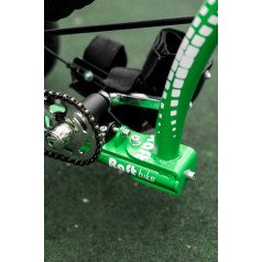 Велосипед обладает лёгким ходом благодаря уникальной геометрии рамы. Даже при минимальном усилии велосипед приводится в движении, что позволяет использовать его даже деткам со слабым тонусом мышц. Конструкция рамы выполнена таким образом, что велосипед легко может быть собран и разобран. Компактный, легко помещается в багажник автомобиля. Эргономическое сидение регулируется по высоте. Стояночный тормоз блокировки движения позволяет использовать велосипед в качестве комнатного тренажёра.