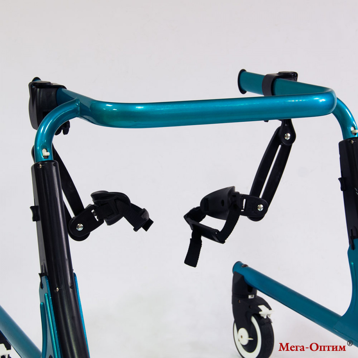 Опоры-ходунки Мега имеют целый ряд специальных приспособлений, которые обеспечивают надёжную фиксацию различных частей тела, что крайне важно для достижения правильного положения во время занятий. Все элементы крепления легко устанавливаются и снимаются, что позволяет адаптировать конструкцию ходунков в зависимости от индивидуальных потребностей конкретного пользователя.