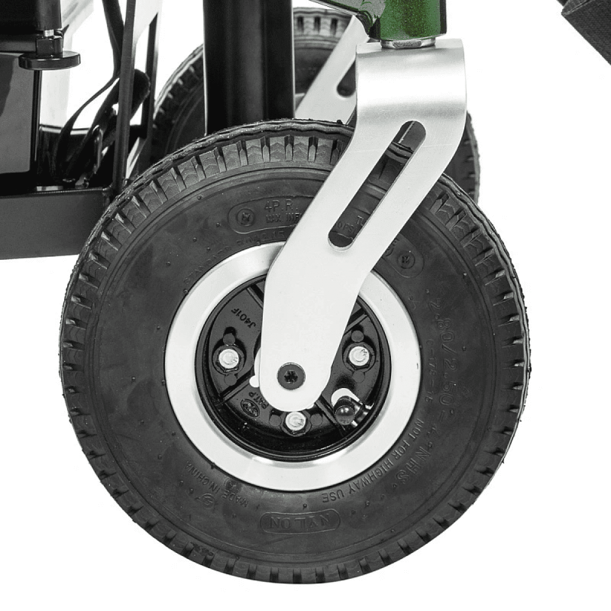 - Пневматические шины передних колёс, диаметр колеса 22,5 см, ширина колеса 6 см