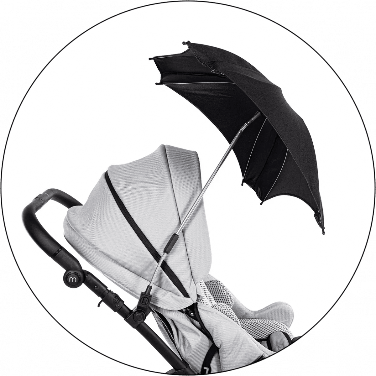 Зонтик для MyWam Mewa — дополнительная опция для защиты ребёнка от солнца и осадков во время прогулок. Помогает создать комфортные условия в любую погоду. Легко крепится к коляске и регулируется по положению.