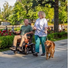 Внутри кресла-коляски реализованы мощные 500-ваттные моторы, которые установлены по одному на каждое заднее колесо. Такое решение обеспечивает высокую манёвренность и достаточную мощность для преодоления различных препятствий. В паре с ними работают энергоёмкие свинцово-кислотные аккумуляторы на 75 АН, которые гарантируют значительный запас хода. В активном режиме управления такое сочетание позволяет пользователю без особых усилий проехать до 40 км по асфальтовым дорогам.