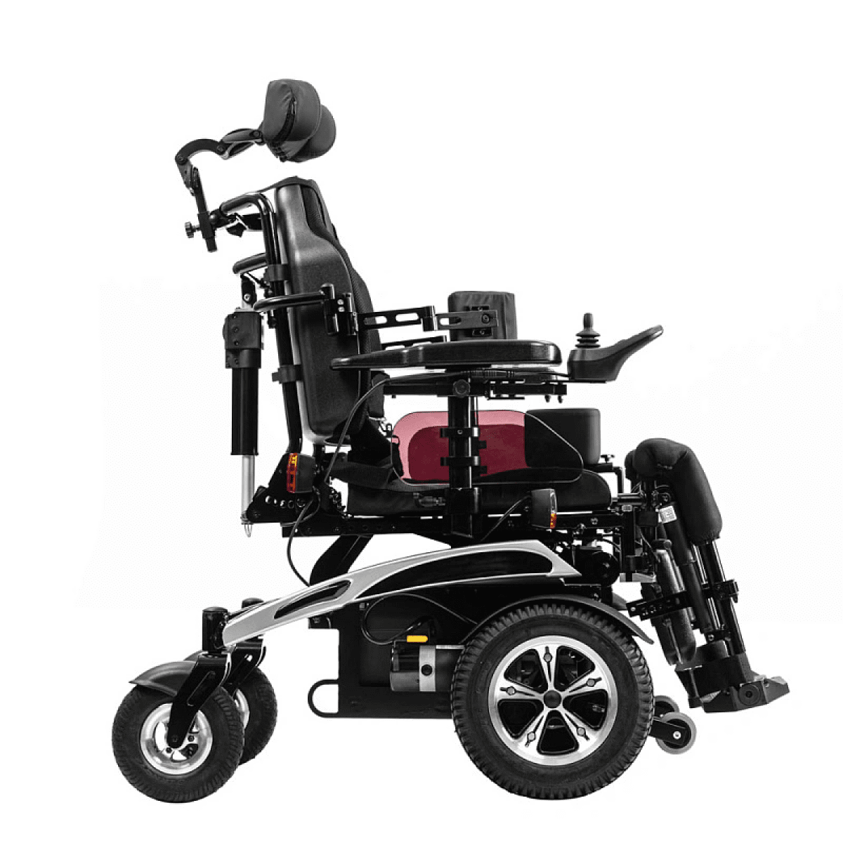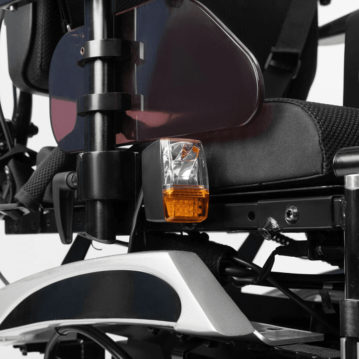 Коляска отличается продуманной системой комфорта: угол наклона спинки, подножек и сиденья регулируется с помощью электропривода, позволяя пользователю подобрать удобное положение для отдыха или активного движения. Эргономичная форма сиденья поддерживает правильную осанку и снижает нагрузку при длительном использовании.