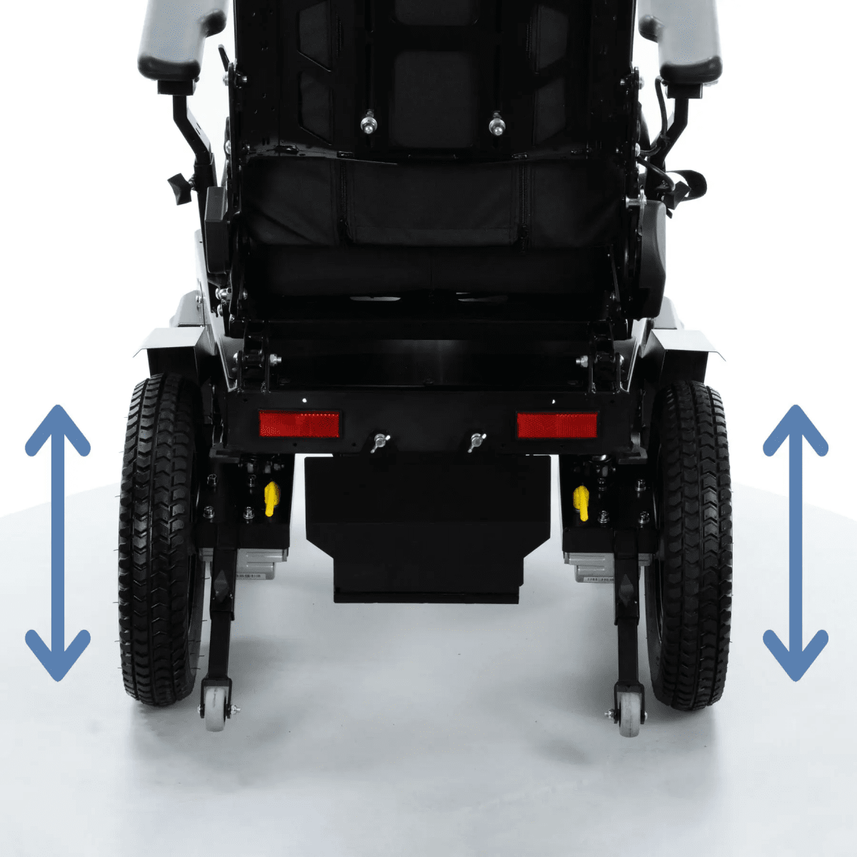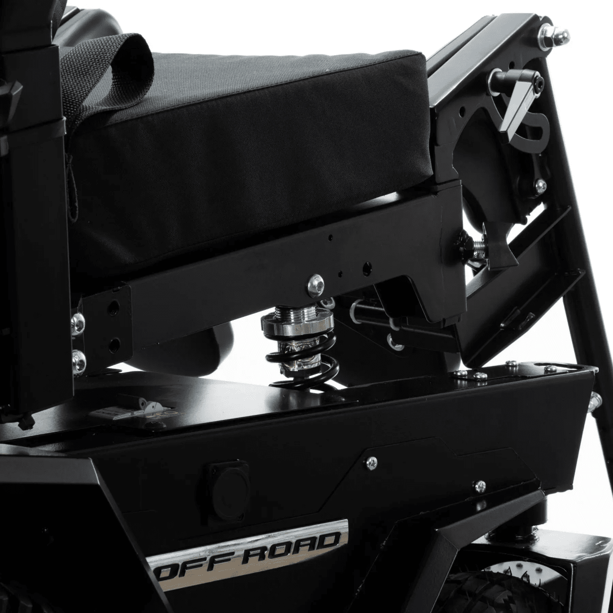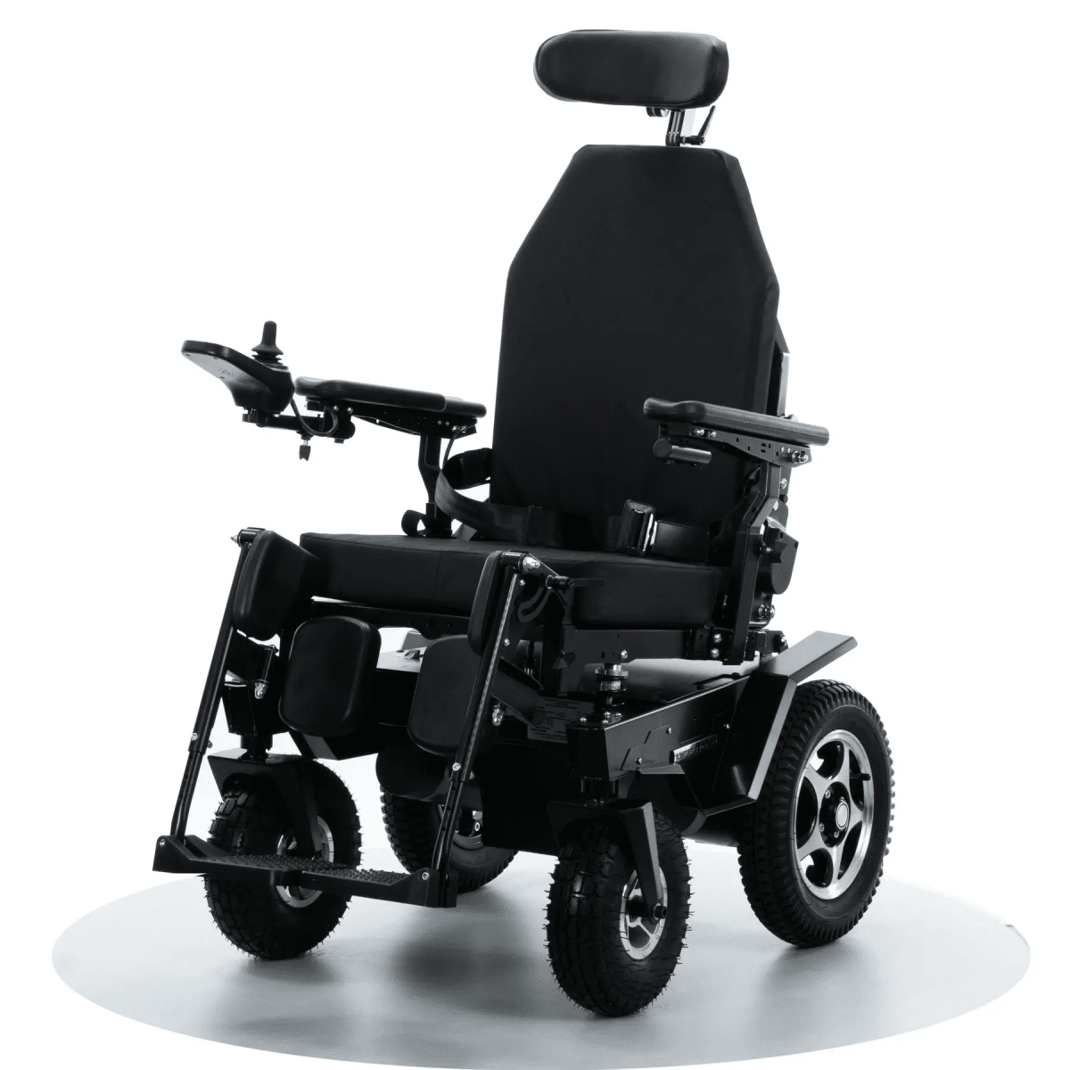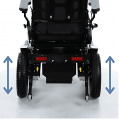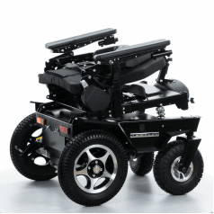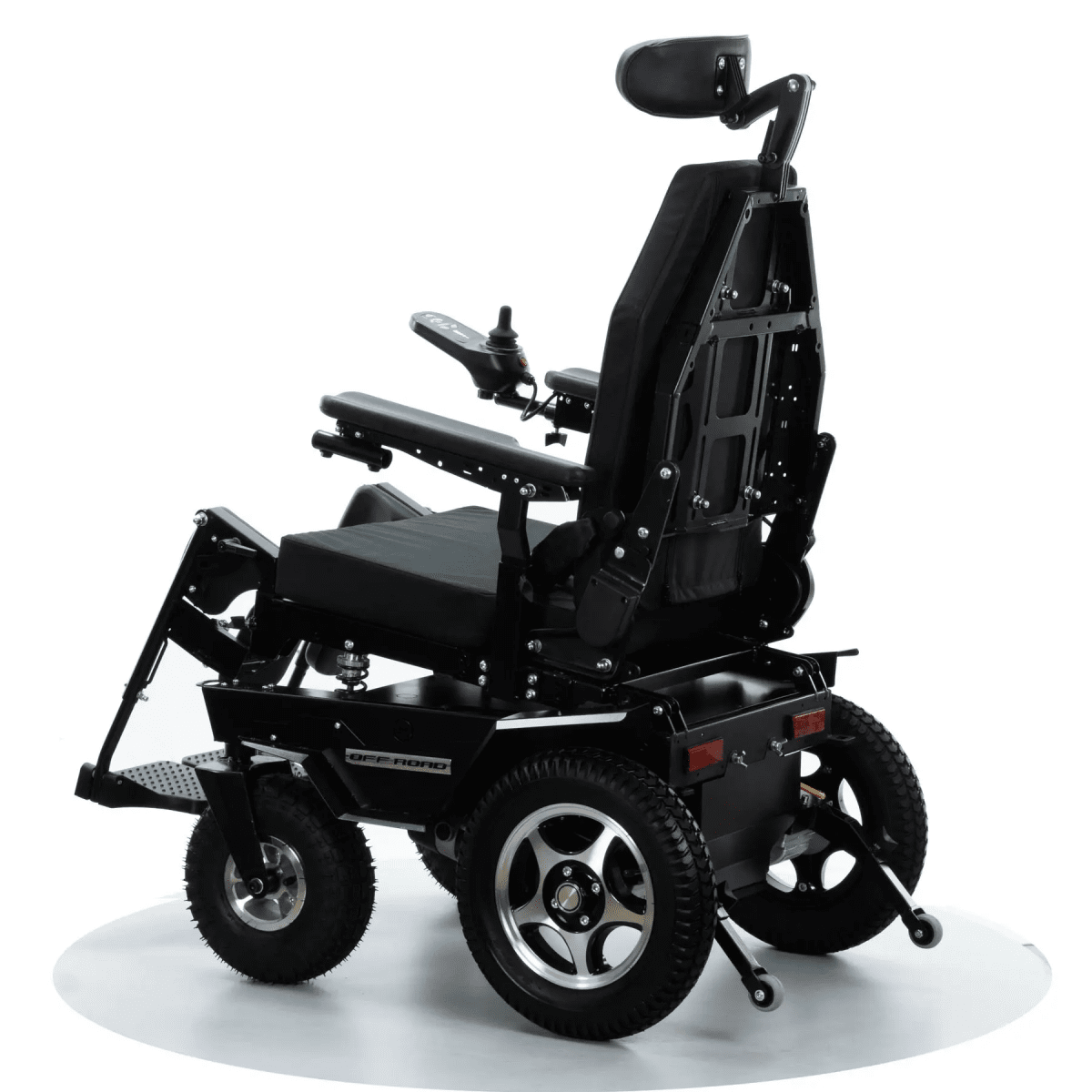 Коляска оснащена мощными двигателями и большими передними колёсами, которые помогают уверенно ехать по неровным поверхностям. Независимая подвеска и амортизаторы снижают вибрацию при движении, а скорость до 10 км/ч позволяет спокойно преодолевать длинные расстояния.