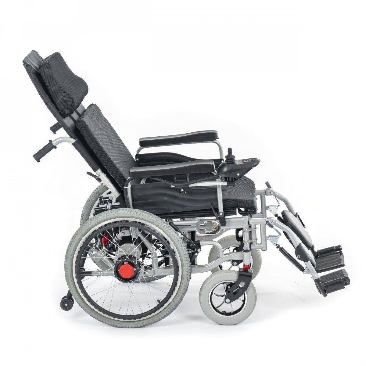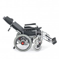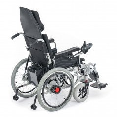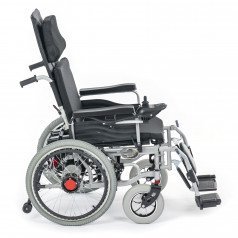 Главная особенность коляски Met Comfort 42 (30 AH) (Мет Комфорт 42 (30 AH)) — это возможность длительного пребывания лёжа или полулежа. Пользователь может самостоятельно откинуть спинку и поднять подножку, чтобы перейти в горизонтальное положение.