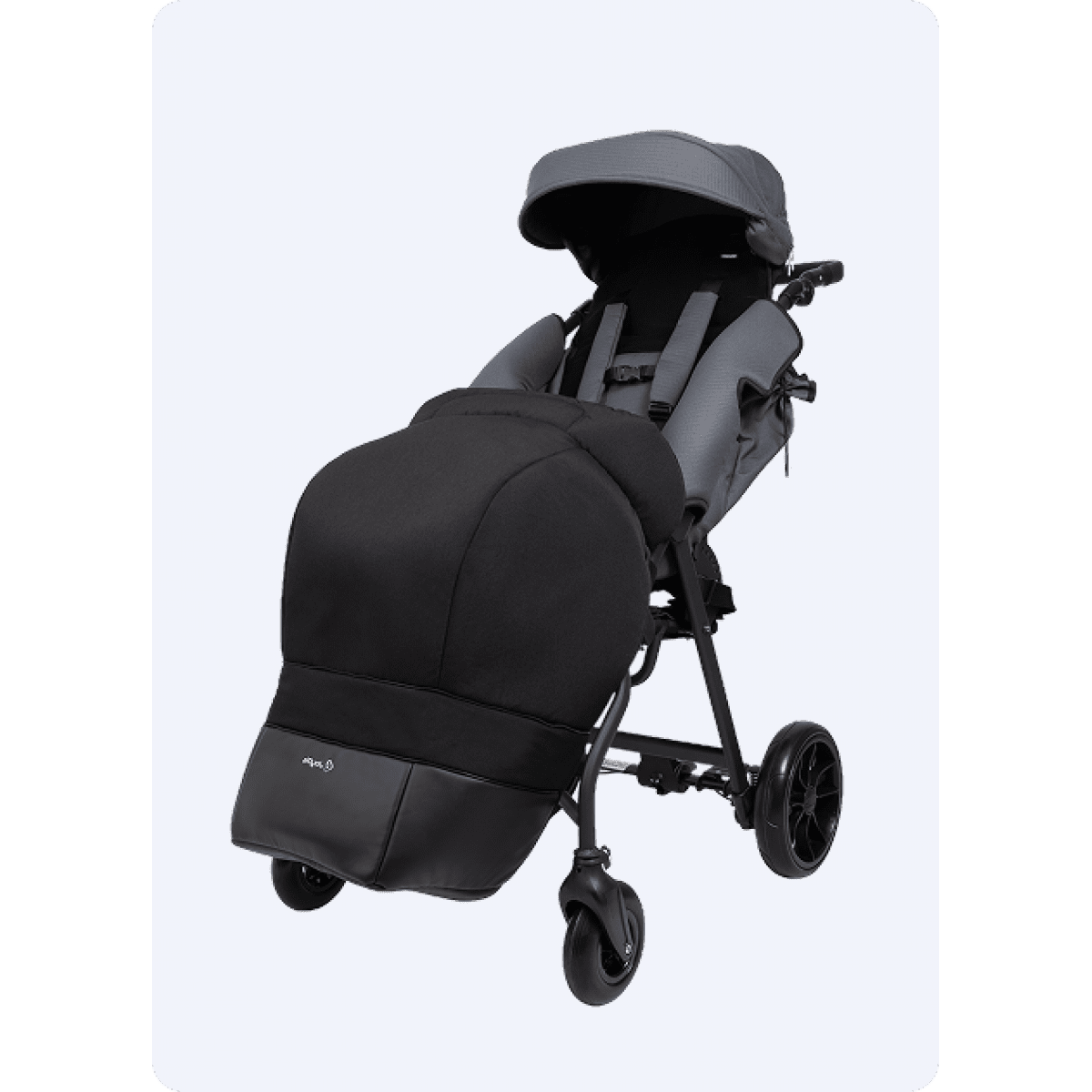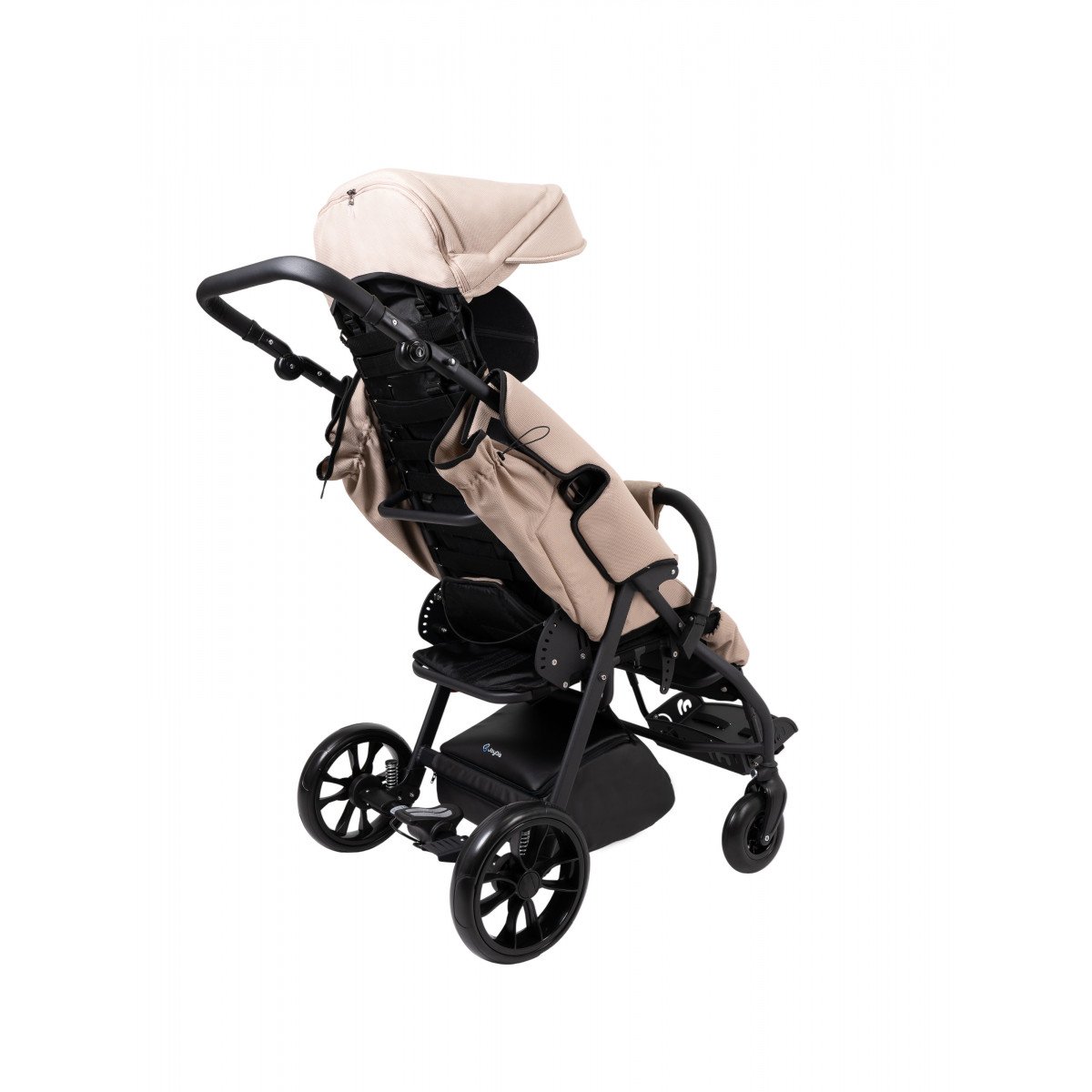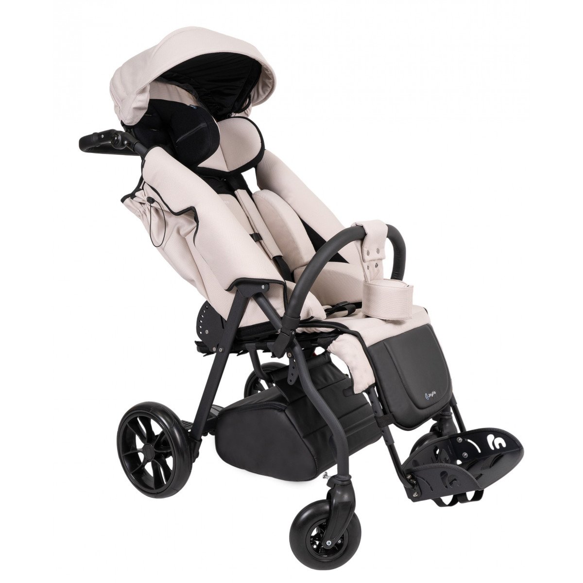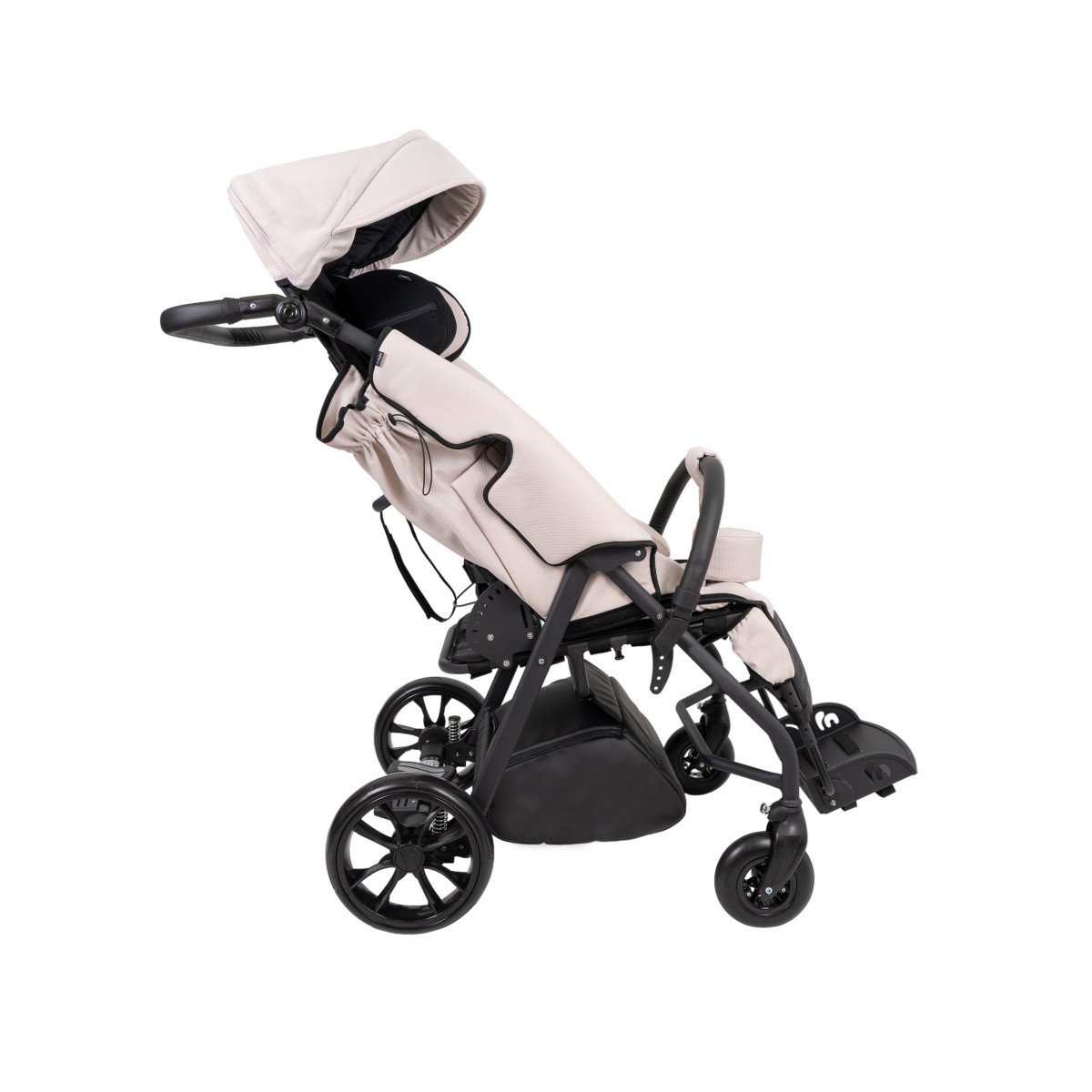 Коляска подстраивается под индивидуальные потребности: мягкие подушки формируют персональную посадку, а спинка плавно регулируется от активного положения до расслабленного отдыха. Всё продумано, чтобы тело сохраняло правильную позу без лишнего напряжения даже во время длительных прогулок.