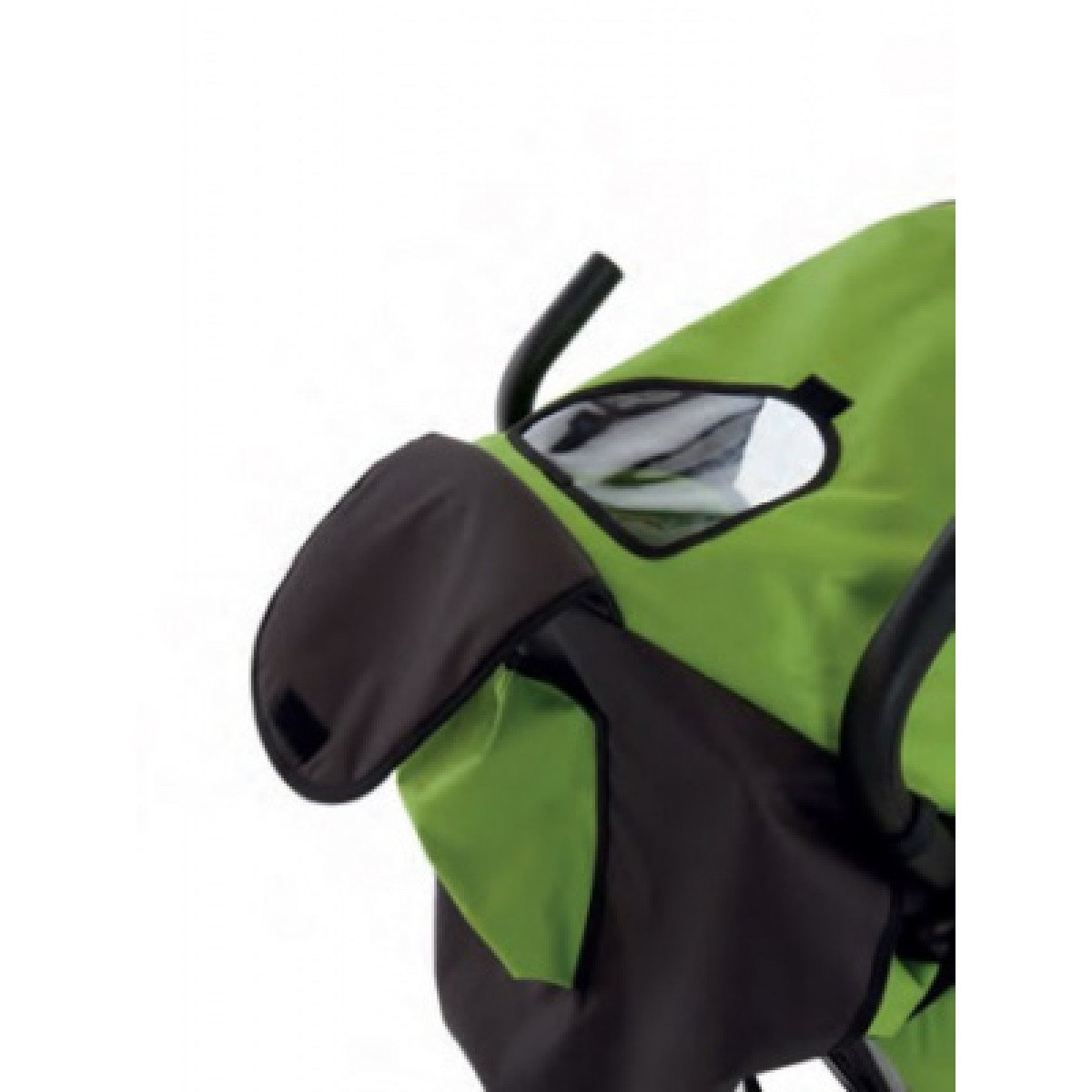 Капюшон закрывает от солнца и осадков, есть смотровое окно и карман для мелочей. В комплект можно добавить дождевик и накидку на ноги. Внешне коляска выглядит как обычная прогулочная модель, поэтому подходит для повседневной жизни без лишнего внимания.