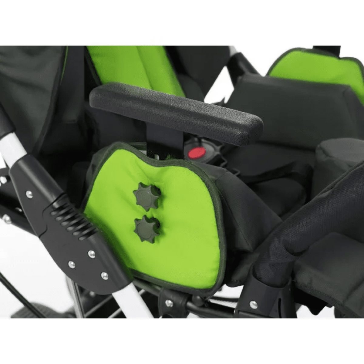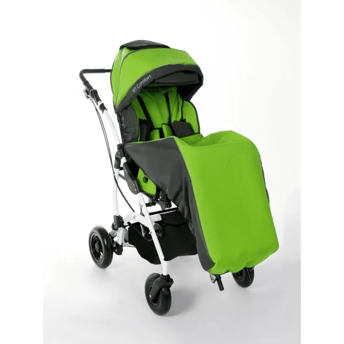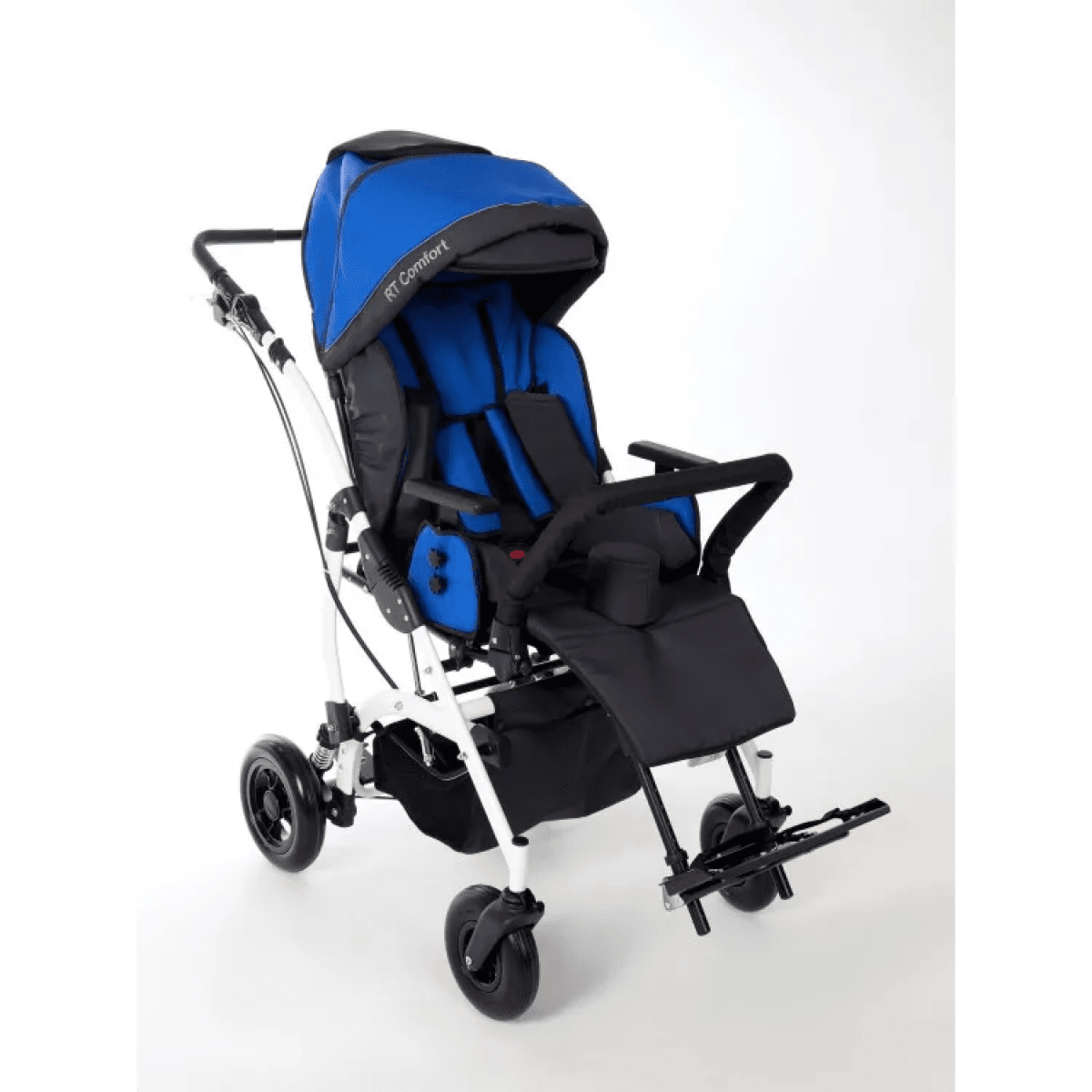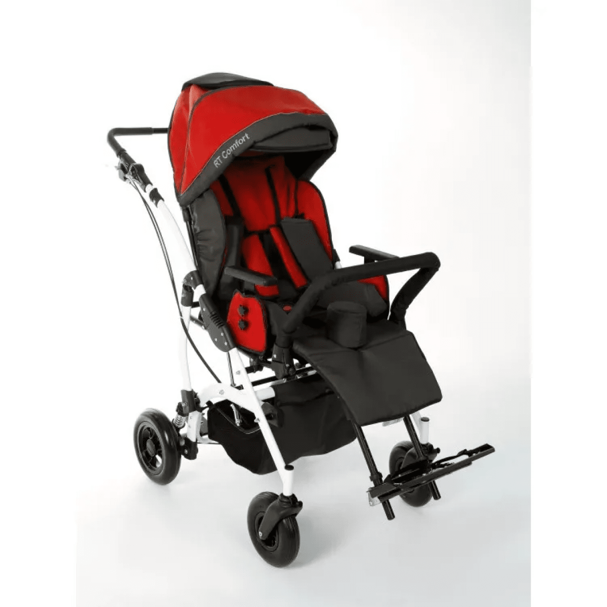 Комфорт поддерживается за счёт мягких элементов, съёмной обивки и системы поддержки корпуса. Коляска помогает удерживать стабильное положение, снижает нагрузку на спину и позволяет ребёнку находиться в удобной позе длительное время. Все элементы легко снимаются для ухода.