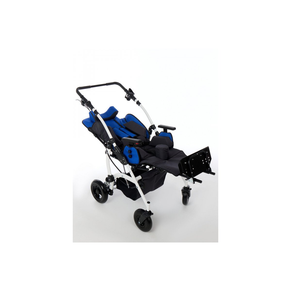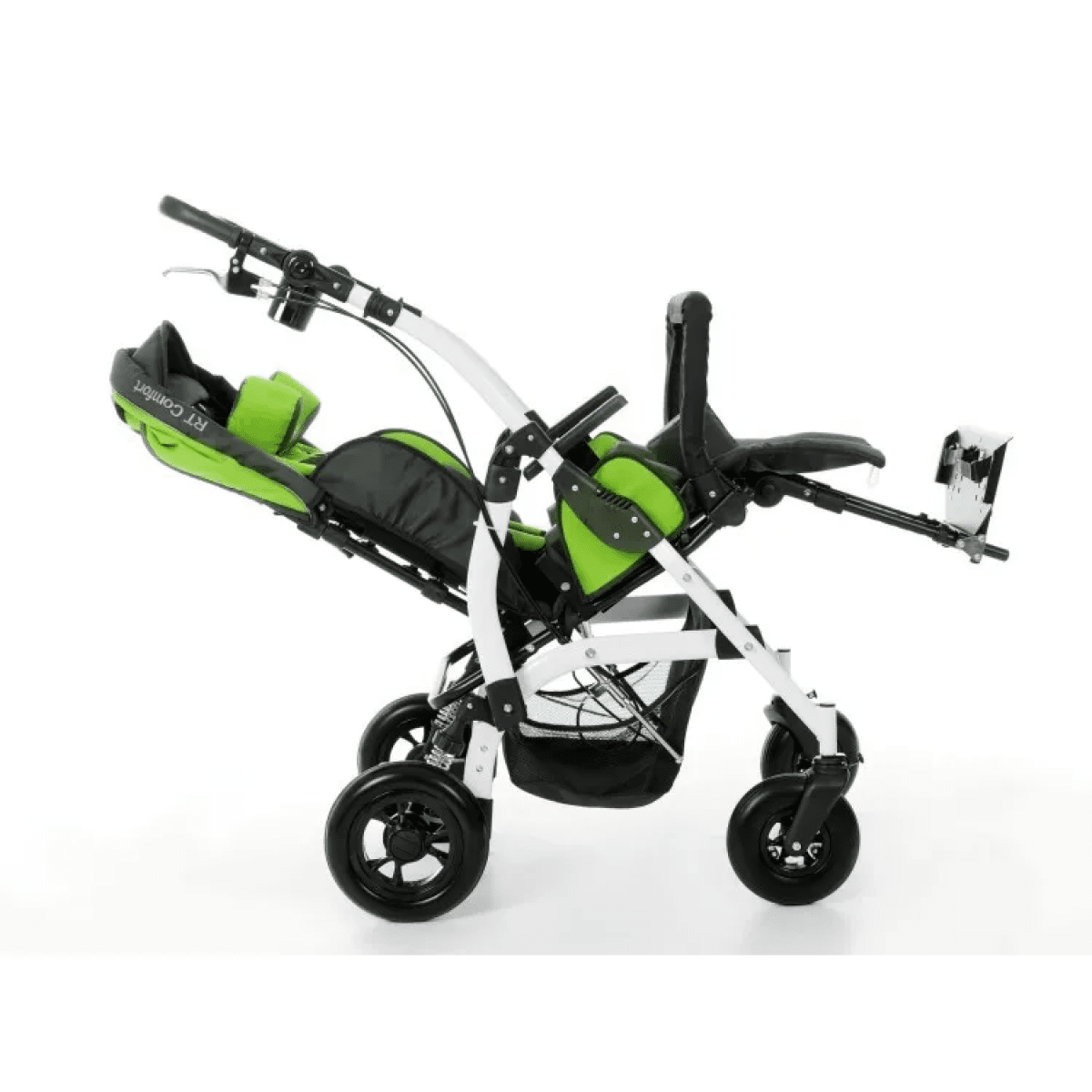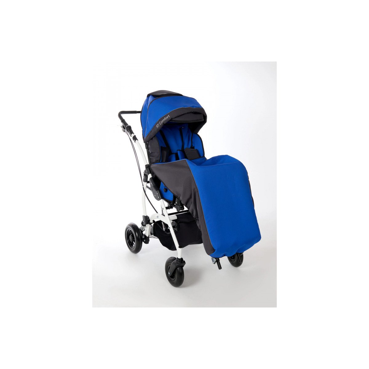 Комфорт поддерживается за счёт мягких элементов, съёмной обивки и системы поддержки корпуса. Коляска помогает удерживать стабильное положение, снижает нагрузку на спину и позволяет ребёнку находиться в удобной позе длительное время. Все элементы легко снимаются для ухода.