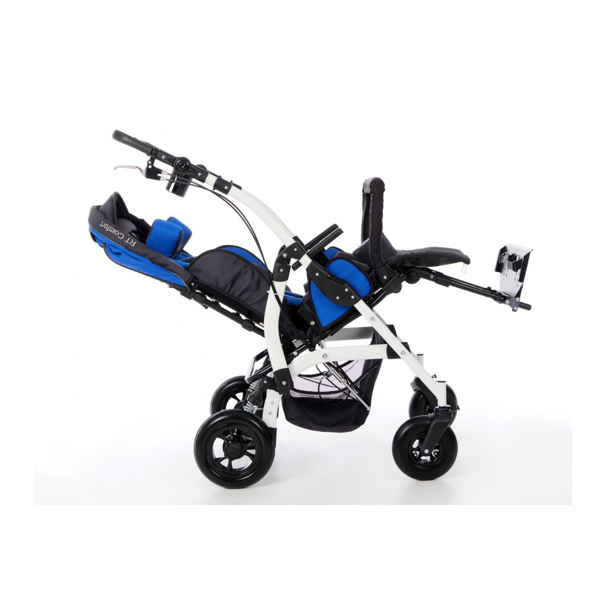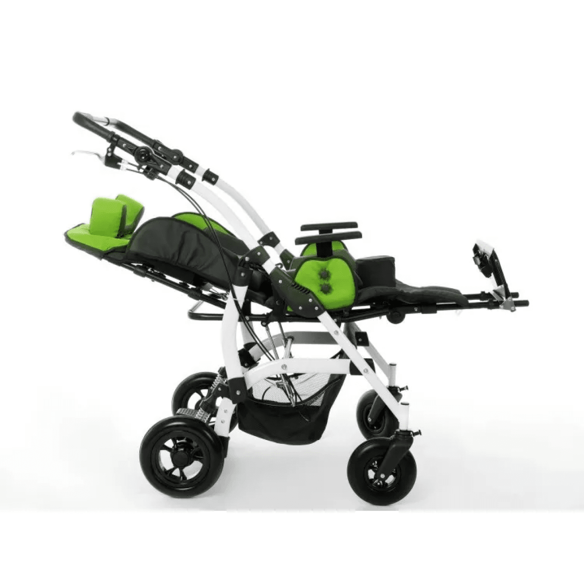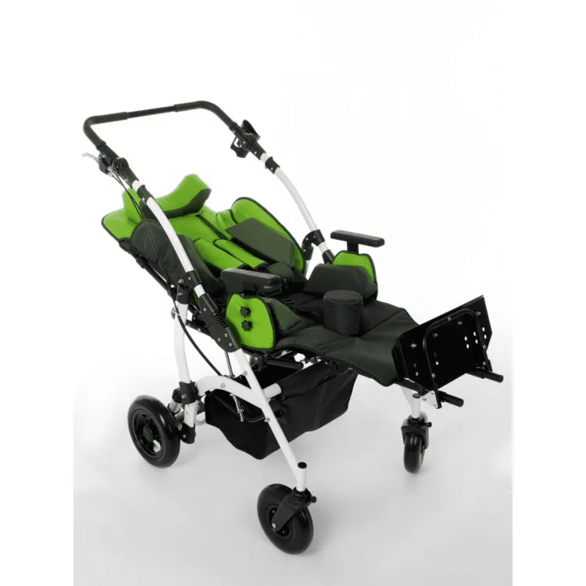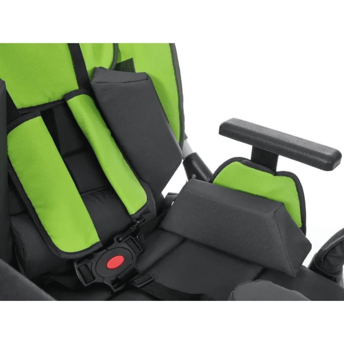 Комфорт поддерживается за счёт мягких элементов, съёмной обивки и системы поддержки корпуса. Коляска помогает удерживать стабильное положение, снижает нагрузку на спину и позволяет ребёнку находиться в удобной позе длительное время. Все элементы легко снимаются для ухода.