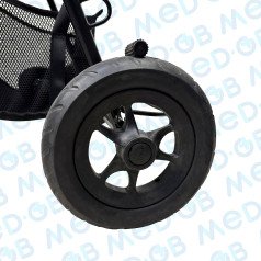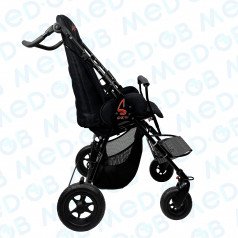 Сиденье и спинка коляски изготовлены из перфорированного гипоаллергенного материала, что минимизирует риск возникновения аллергических реакций. Этот материал легко очищается, благодаря чему за ним просто ухаживать — нет необходимости использовать специальные чистящие средства, что удобно для родителей, опекунов и заботливых специалистов по реабилитации.