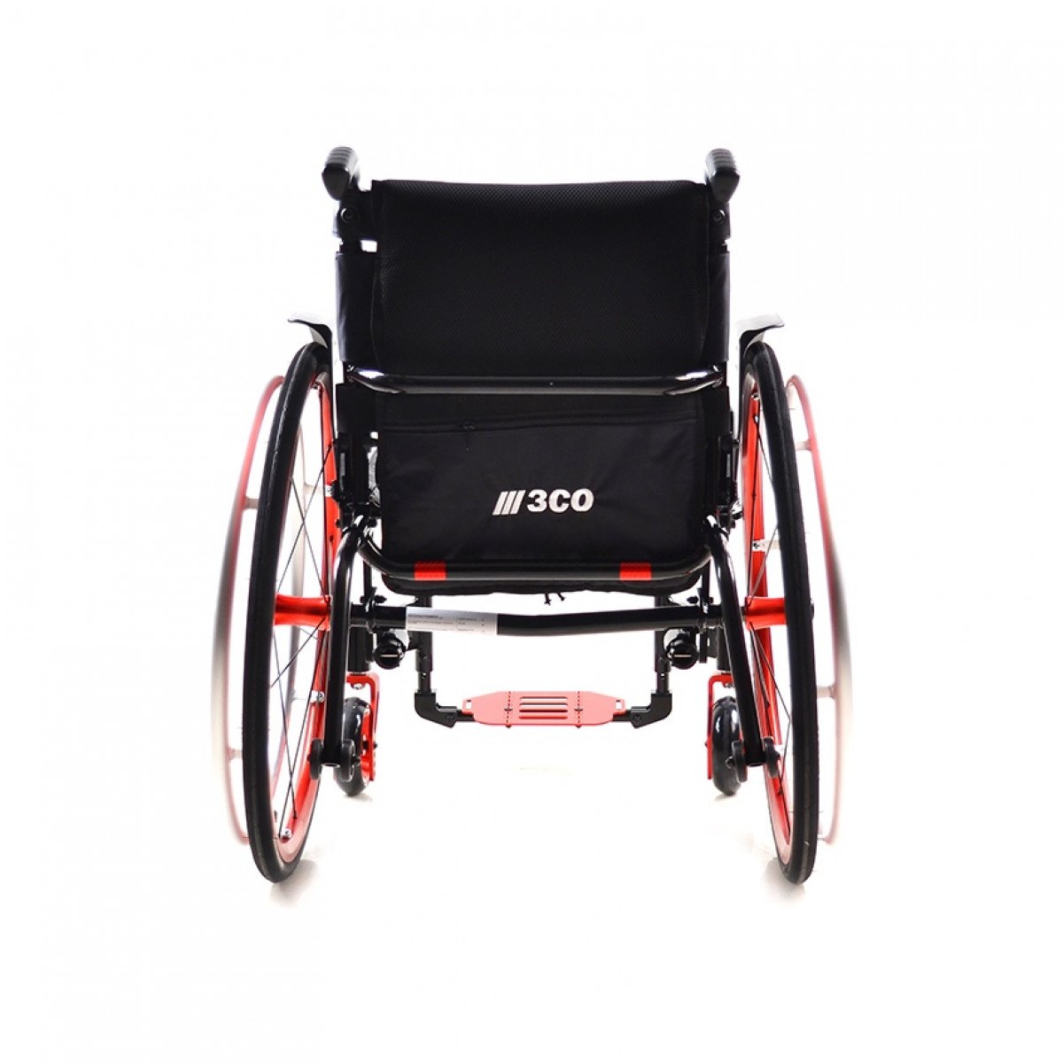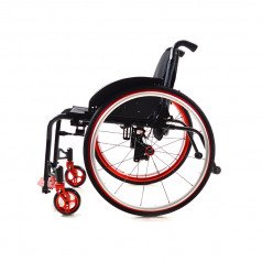 Передние колёса — цельнолитые, задние — быстросъёмные, доступны в вариантах с цельнолитыми или пневматическими шинами. Обода с антискользящим покрытием упрощают управление, а стояночные тормоза с регулировкой обеспечивают контроль при остановке. Для устойчивости предусмотрены антиопрокидыватели, а складные ручки с рельефными накладками делают управление для сопровождающего более удобным.