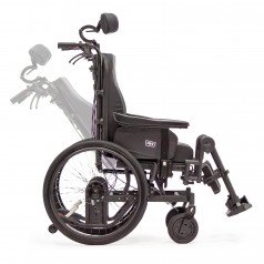 Коляска может быть оснащена абдуктором, который помогает удерживать правильное положение ног и предотвращает соскальзывание. Боковые поддержки фиксируют корпус и снижают риск заваливания, за счёт чего пользователь чувствует себя увереннее даже при длительном сидении. Eclipse A подходит как для самостоятельного передвижения, так и для использования с сопровождающим.