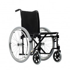 Коляска легко складывается без инструментов, а быстросъёмные задние колёса позволяют быстро подготовить её к транспортировке. Ручные стояночные тормоза обеспечивают фиксацию при остановке и делают пересаживание безопаснее. Для сопровождающего предусмотрены упоры, которые помогают преодолевать небольшие препятствия.