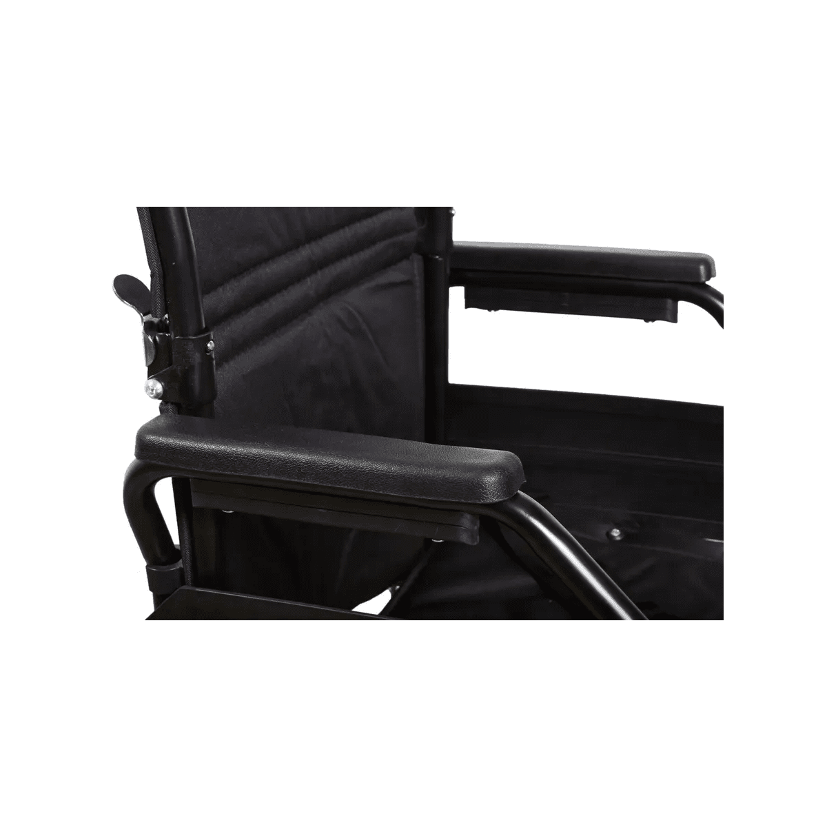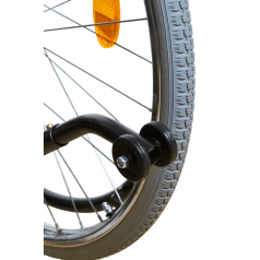 Рама выполнена из стальных труб с антикоррозийным покрытием — это про прочность и долгий срок службы. Коляска складывается без инструментов, а складная спинка помогает уменьшить габариты при хранении. Доступны варианты колёс: цельнолитые или пневматические — под разные условия использования. Для устойчивости предусмотрен антиопрокидыватель с резиновым наконечником, который делает передвижение безопаснее.