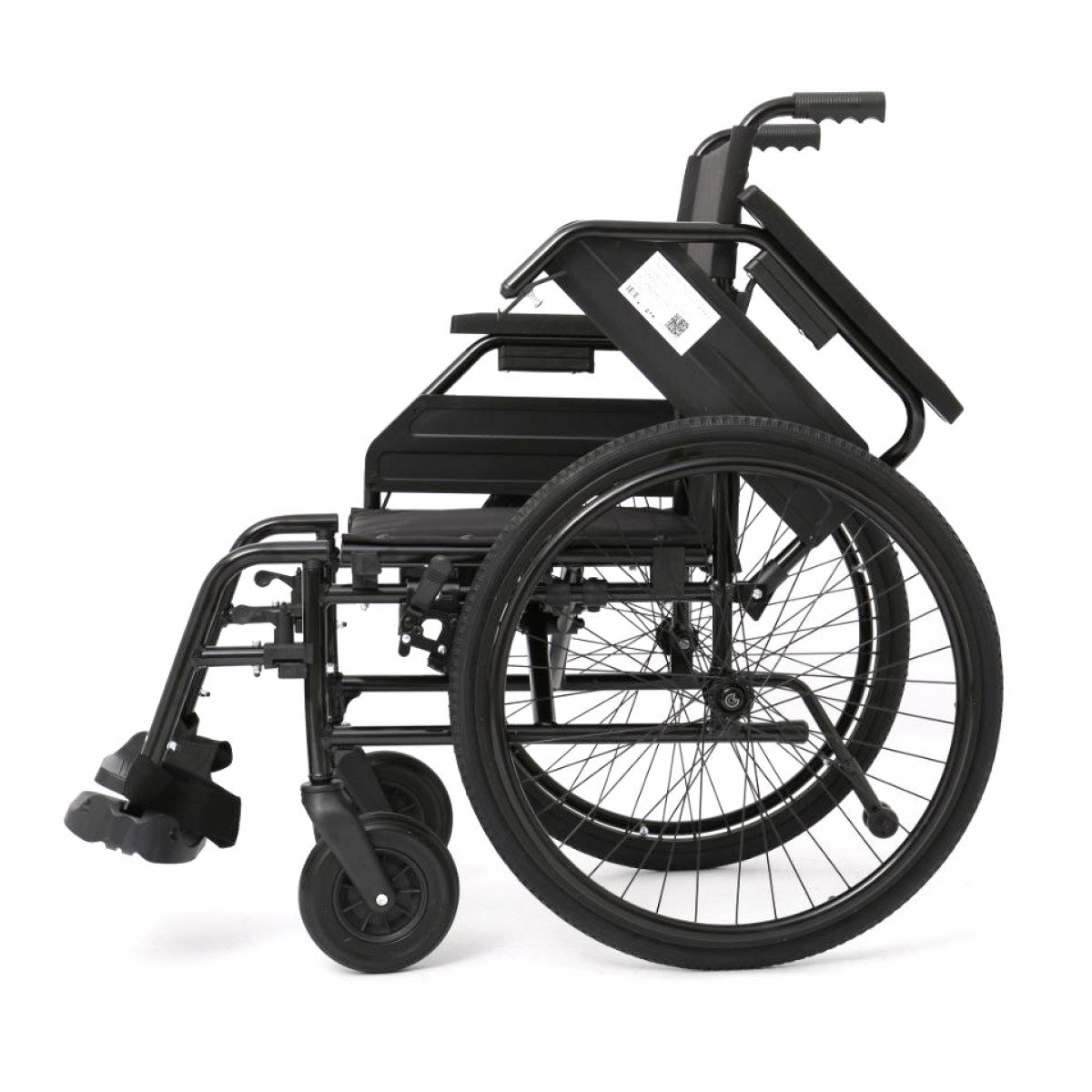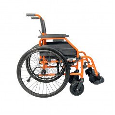 Задние колёса — быстросъёмные, с кнопочной фиксацией, доступны в вариантах с цельнолитыми или пневматическими шинами. Передние колёса обеспечивают манёвренность, а вся система колёс помогает уверенно передвигаться по разным покрытиям. Стояночные тормоза регулируются по глубине установки, что повышает контроль и безопасность при остановке.