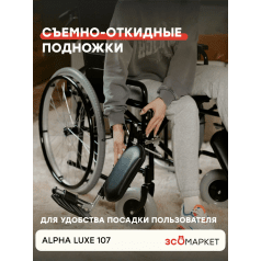 Кресло-коляска INTCO Alpha Luxe 107 (Интко Альфа Люкс 107) — складная модель с ручным приводом для дома и улицы. Главная особенность — удлинитель спинки и широкий диапазон настроек, которые позволяют точнее адаптировать посадку под пользователя и обеспечить более комфортную поддержку.