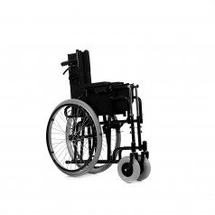 Коляска выполнена на прочной стальной раме, что даёт надёжность при регулярной эксплуатации. Регулируемые элементы помогают подобрать удобное положение корпуса и снизить нагрузку при длительном сидении. Цельнолитые колёса не требуют обслуживания и обеспечивают устойчивость на разных покрытиях.