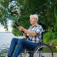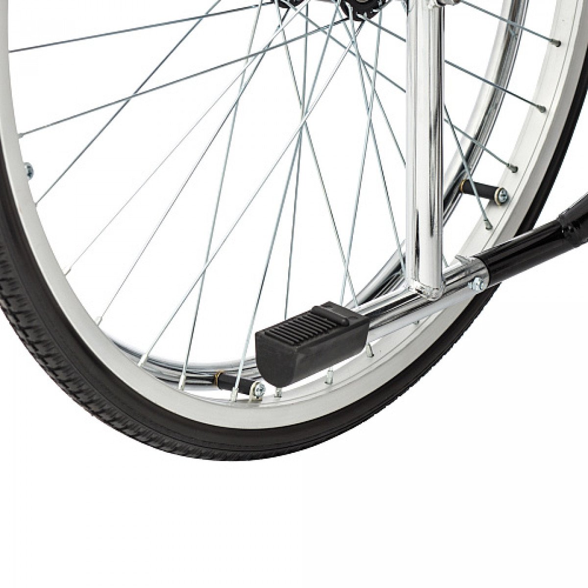 Для удобства пользователя предусмотрены съёмные подлокотники, регулируемые подножки и ручки для сопровождающего. На спинке есть карман для необходимых мелочей. Модель оптимально подходит для передвижения по ровным покрытиям и доступна в разных вариантах ширины сиденья.