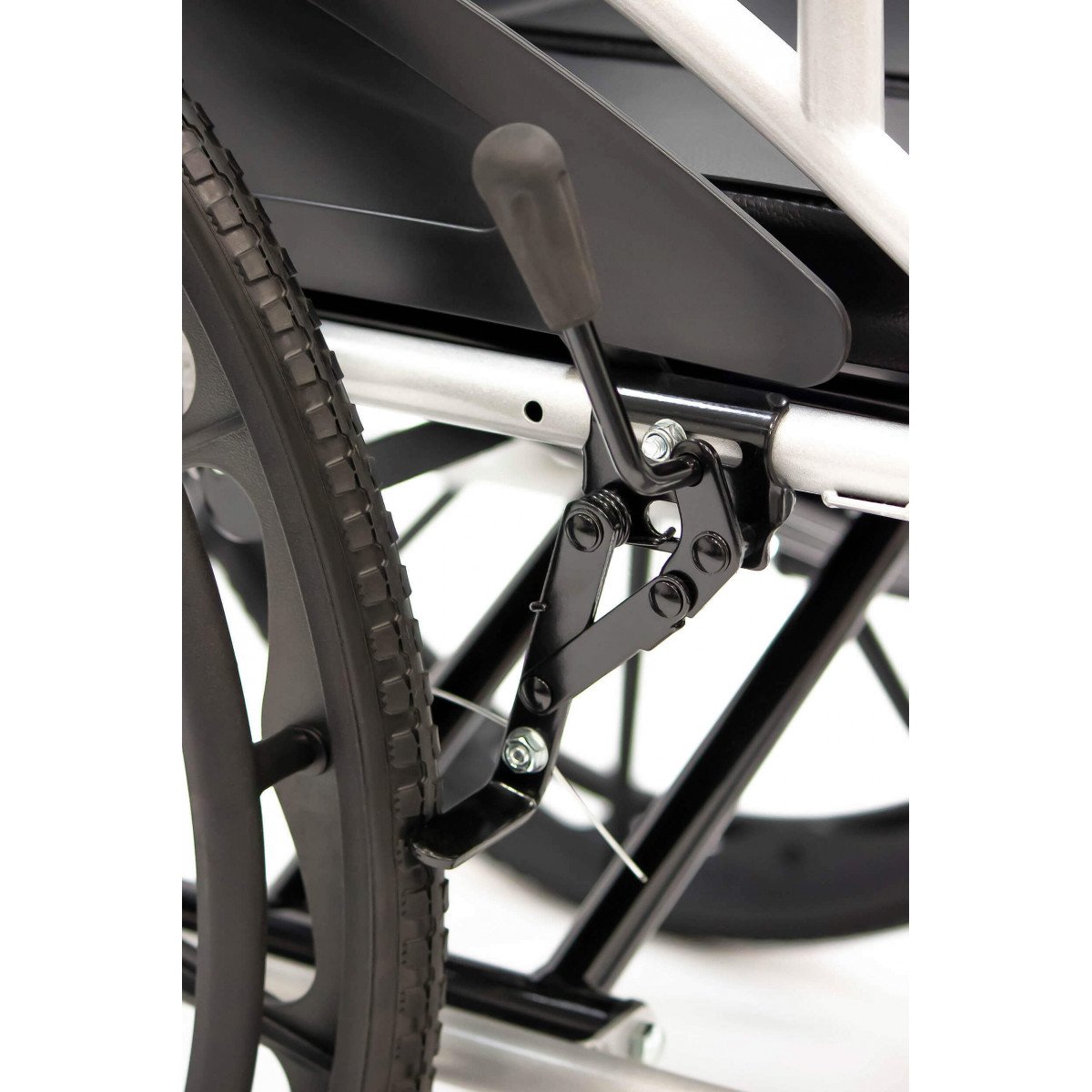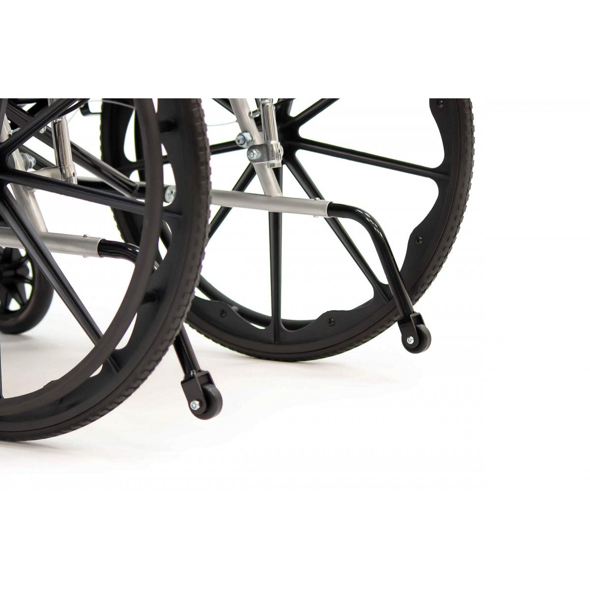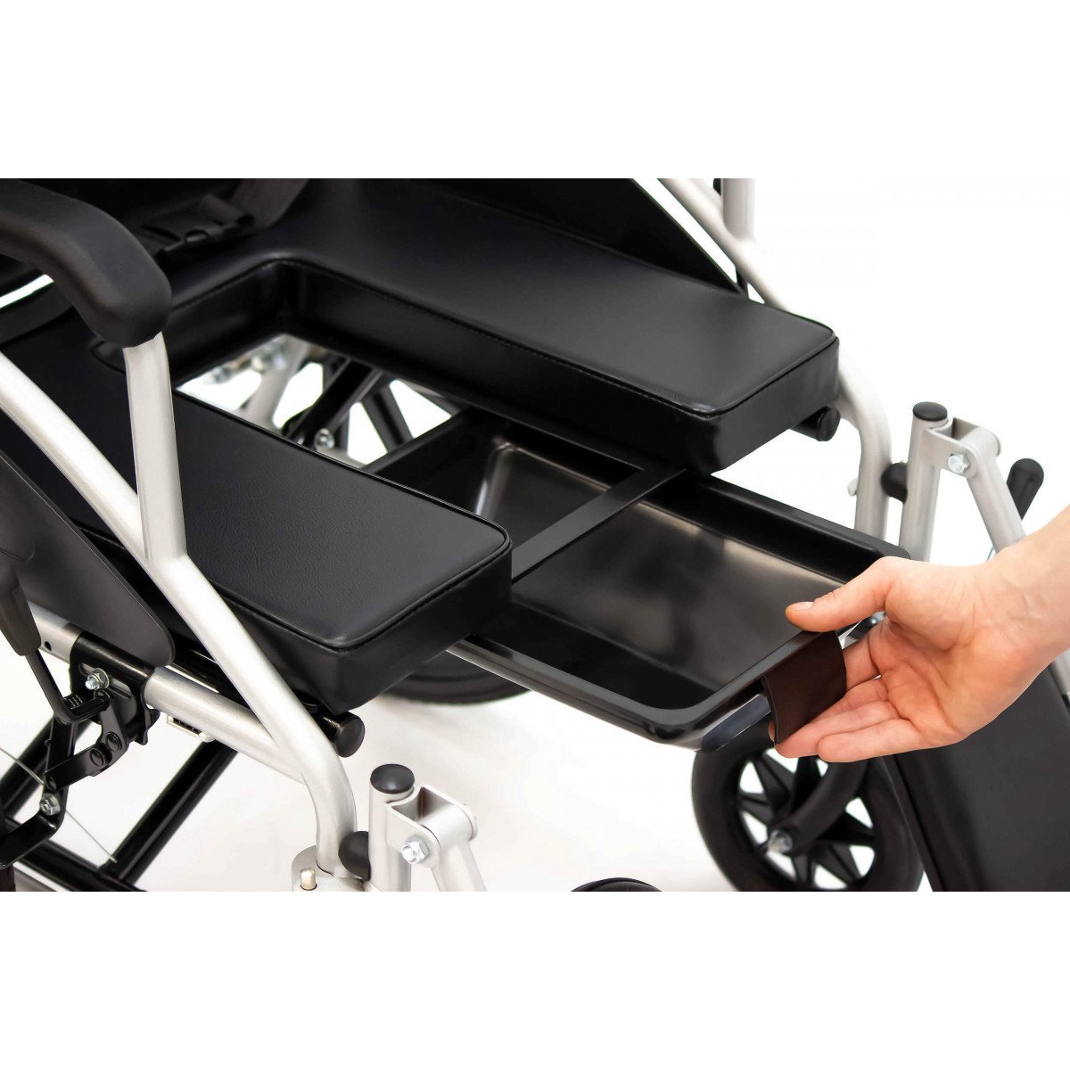 Сиденье из кожзаменителя легко очищается и подходит для регулярного ухода. Встроенное санитарное оснащение упрощает повседневные процедуры, а рифлёные обода облегчают управление. Модель продумана для пользователей с ограниченной подвижностью и тех, кому требуется больше поддержки в течение дня.