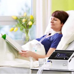 PrismaVENT 40 отличается продуманной эргономикой: лёгкий корпус, удобная ручка для переноски и встроенная батарея позволяют использовать его не только в стационаре, но и на дому. Устройство совместимо с большинством дыхательных контуров, поддерживает подключение увлажнителя и кислородного концентрата, а встроенная память фиксирует данные терапии для последующего анализа врачом.