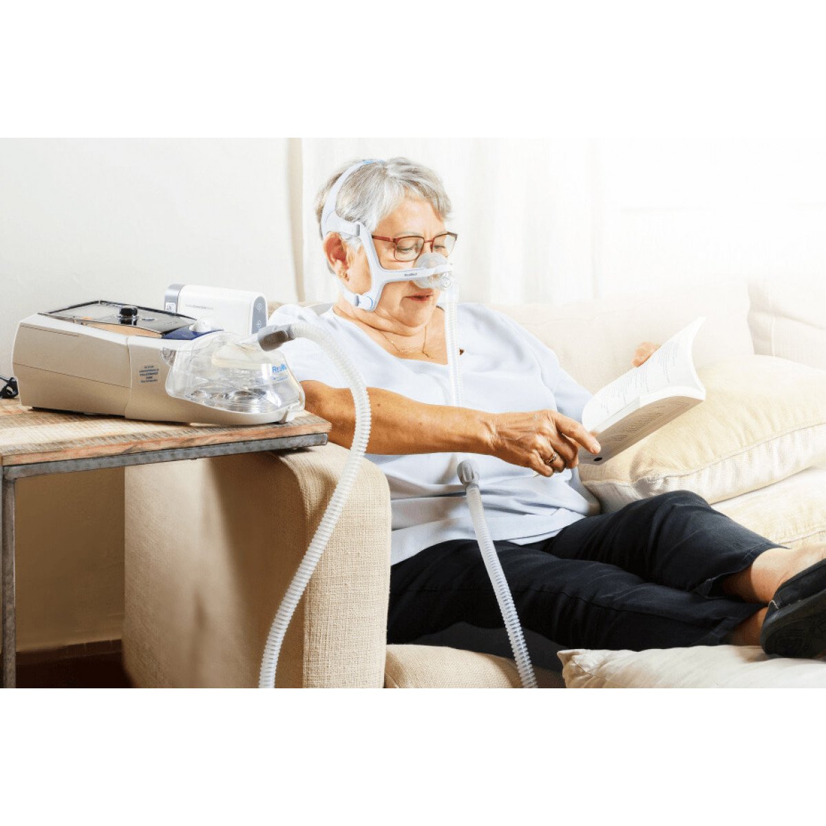 Главная особенность устройства — технология поддержки давления с заданным объёмом. Она автоматически подстраивается под дыхание пациента, регулируя давление и частоту, чтобы поддерживать оптимальную вентиляцию даже при изменениях ритма дыхания. Дополнительные функции Vsync и TiControl обеспечивают плавную работу аппарата и точное соответствие дыхательным циклам пациента.