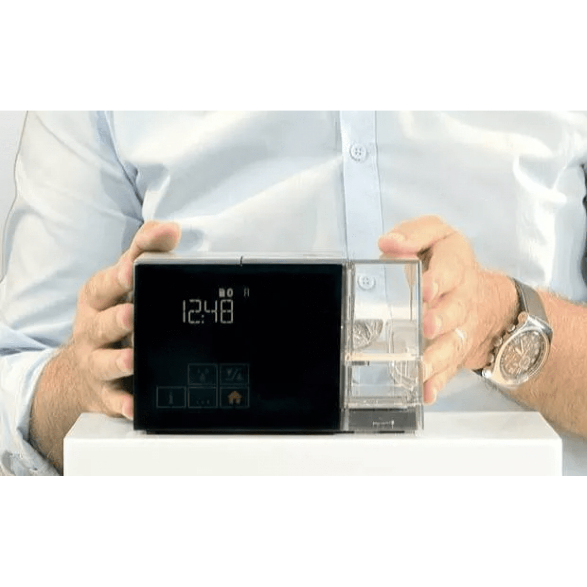 Прибор сочетает в себе передовые технологии, интуитивное управление и современный минималистичный дизайн. Встроенные интеллектуальные алгоритмы анализируют дыхание в режиме реального времени и поддерживают оптимальное давление на протяжении всей ночи, что делает терапию максимально эффективной и комфортной.