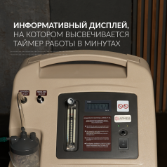 Главное конструктивное преимущество модели — наличие встроенного ингалятора. Это позволяет применять аппарат не только для классической кислородотерапии и ароматерапии, но и для ингаляционного введения лекарственных препаратов, что делает его незаменимым в лечении заболеваний органов дыхания. Аппарат обладает производительностью до 10 литров в минуту, прошел клинические испытания и может использоваться в качестве основного или резервного источника кислорода.