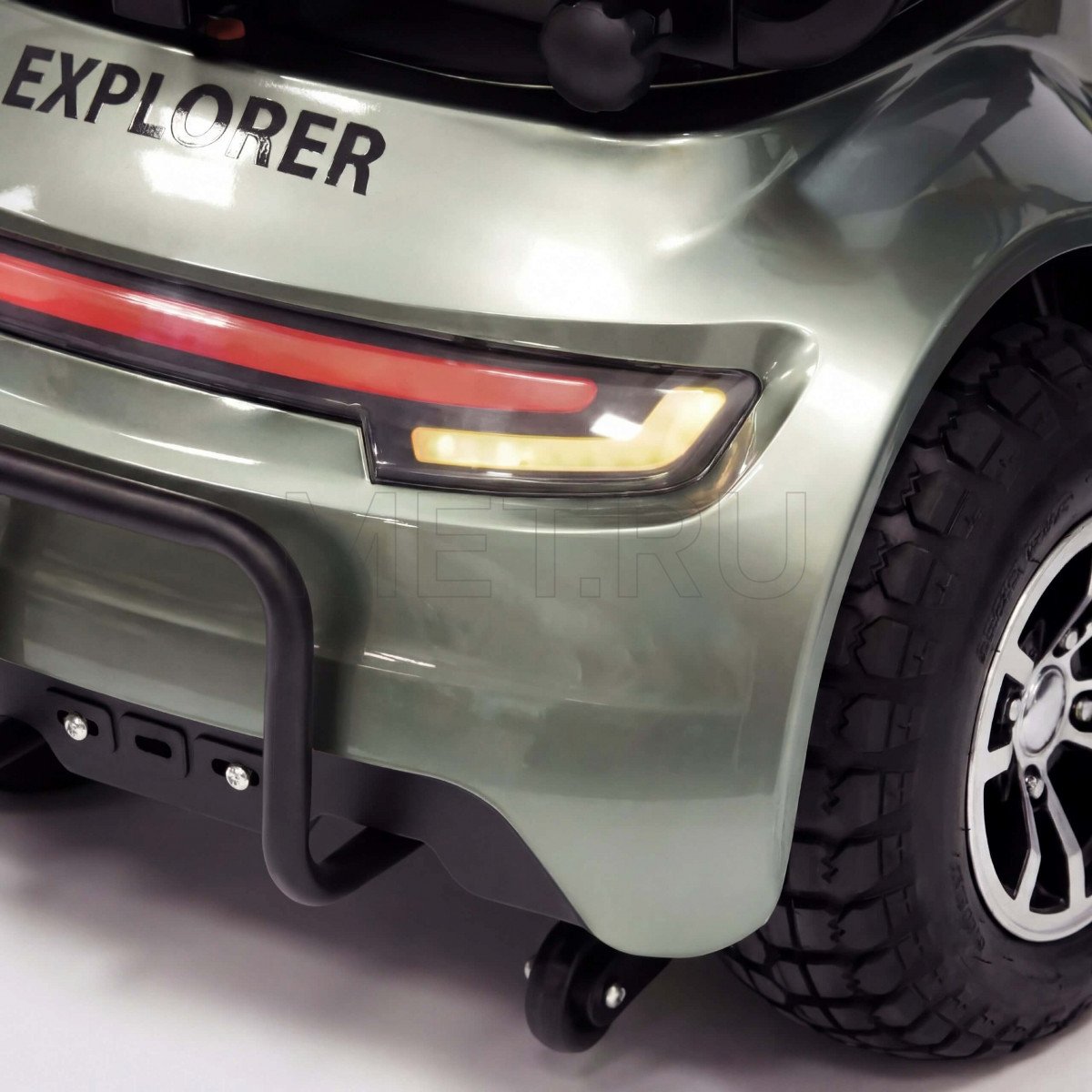 Met Explorer Tour (Мет Эксплорер Тур) — электрический скутер для комфортного передвижения людей с ограниченной мобильностью. Он подходит для прогулок, поездок по городу и ежедневных дел: походов в магазин, аптеку или поликлинику, а также для перемещения по территории частных посёлков.