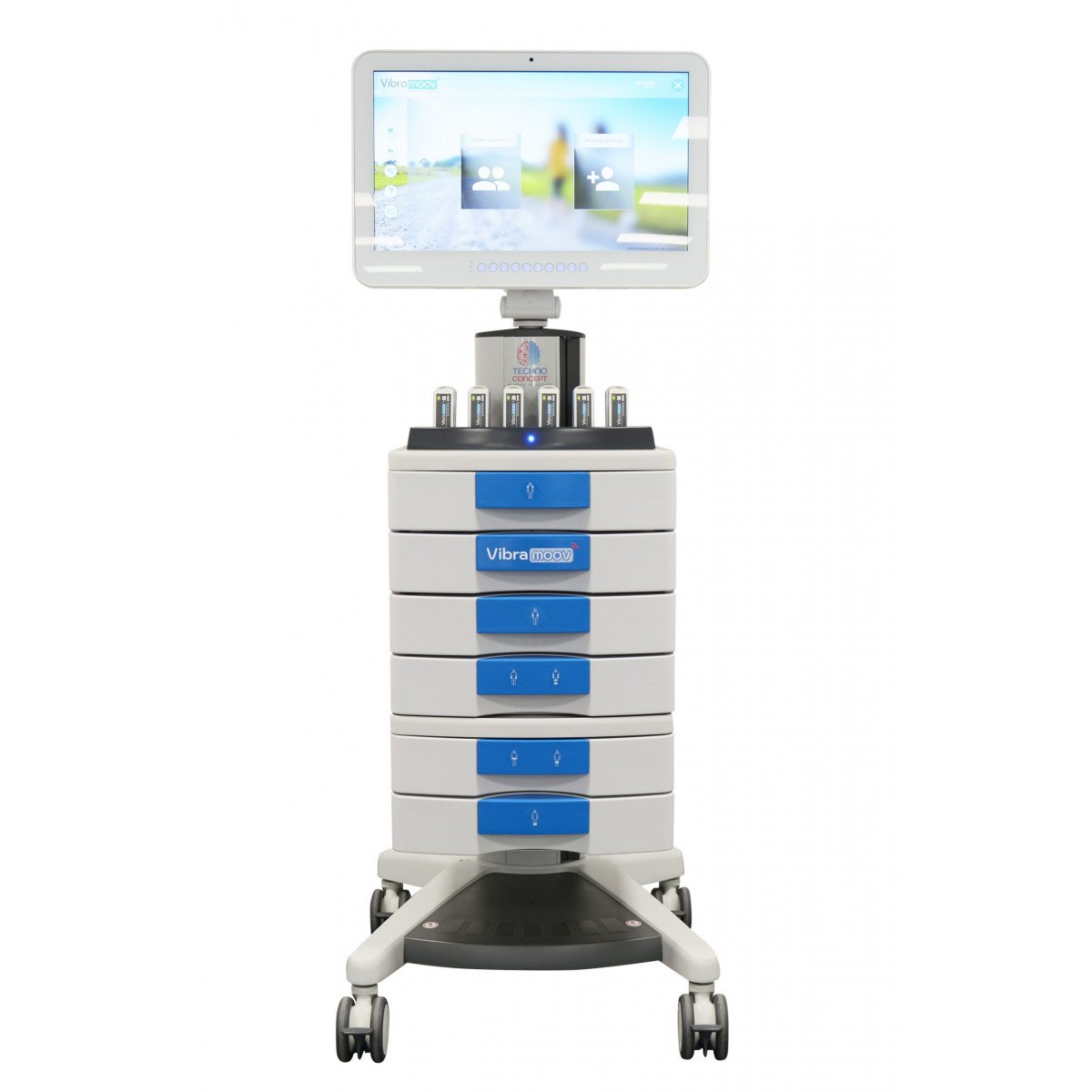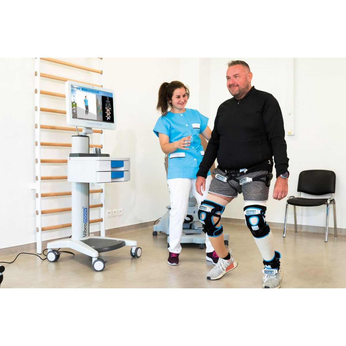 Кроме того, мобильный блок Vibramoov, представляющий собой своеобразный подъёмник, позволяет врачам проводить раннюю вибрационную терапию у пациентов, находящихся в лежачем состоянии. Это критически важно для сохранения локомоторного паттерна даже в тех случаях, когда пациент не может самостоятельно передвигаться. Данная терапия помогает создать у пациента ощущение движения ног, что способствует активации мышечного ответа и позволяет производить активные движения, ускоряя процесс восстановления.