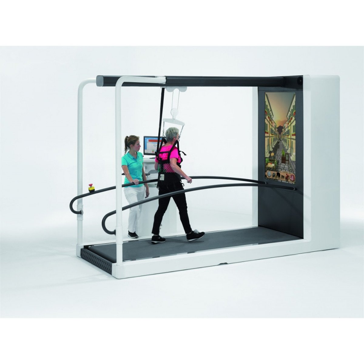 Использование фронтального дисплея совместно с проектором визуальных объектов позволит достичь автоматизма в ходьбе, а также поможет развить способность выполнения нескольких задач одновременно. Например, можно тренировать ходьбу и выполнять упражнения для когнитивной тренировки. При проведении тренировки врачу или инструктору ЛФК поступает прямая визуальная и аудитивная обратная связь. Видеозаписи сеансов терапии позволяют изучать и корректировать походку пациента.